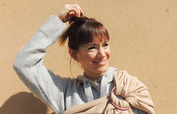 Pack of first fit 100% organic cotton in natural beige color of “El Bebé Zen” and baby ring sling 100% organic cotton in natural brown color of “UP WE GO”.